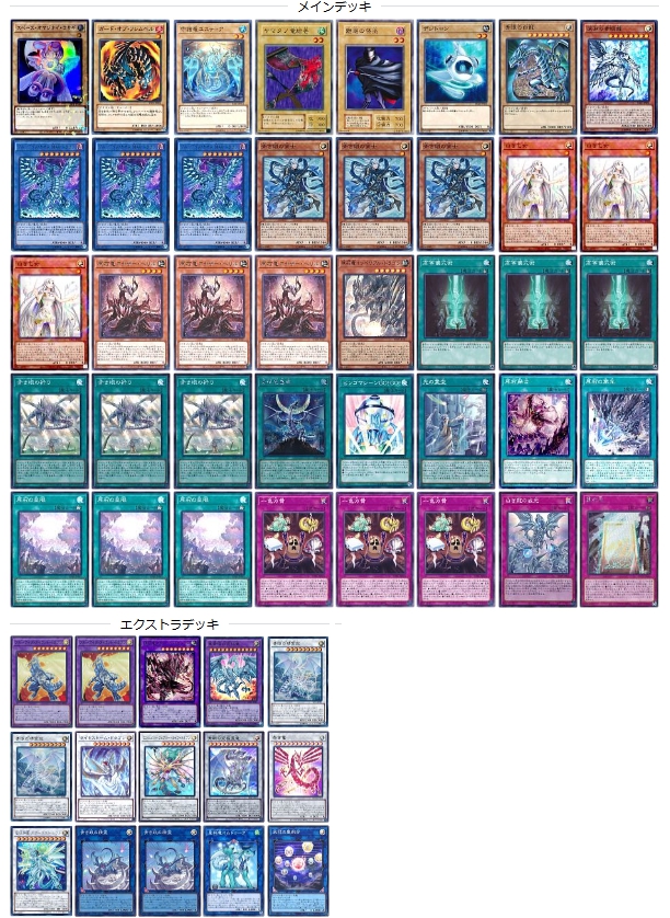 ■ 最初は「《スネーク・レイン》《高等儀式術》《巳剣降臨》」で爬虫類族の通常モンスター5種類を墓地に貯める《一色万骨》+「巳剣」デッキの予定でしたが、シンプルに《高等儀式術》で5種類の通常モンスターを墓地へ送りたいという事で、儀式魔法をサーチできる《深淵の青眼龍》で《高等儀式術》にアクセスできる「ブルーアイズ」デッキに着地。《一色万骨》及び《原石の皇脈》で通常モンスターの《青眼の白龍》の攻撃力をアップしながら戦えます。